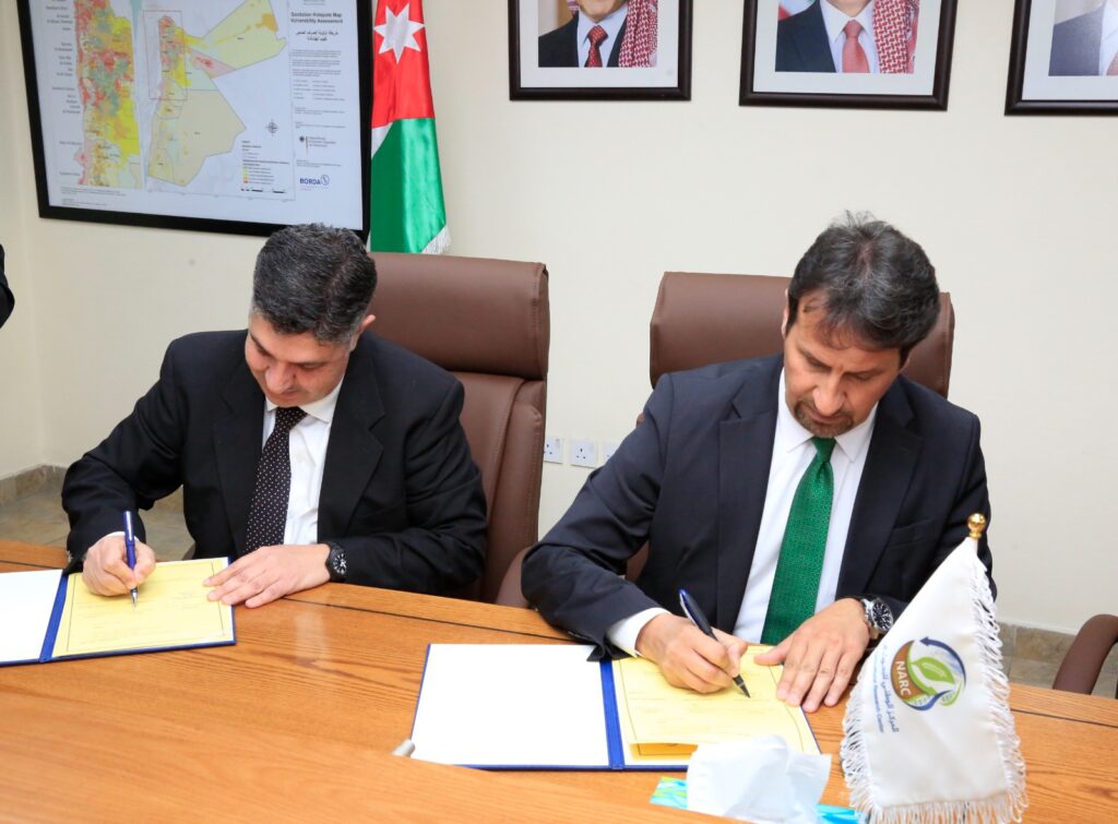 في إطار جهودها لتعزيز التعاون البحثي والابتكار في إدارة الموارد المائية، وقّعت وزارة المياه والري وسلطة المياه والمركز الوطني للبحوث الزراعية وقعها امين عام الوزارة الدكتور جهاد المحاميد والمهندس وائل الدويري امين عام سلطة المياه من جهة والدكتور خالد أبو حمور من جهة أخرى مذكرة تفاهم تهدف إلى إنشاء محطة بحثية متخصصة في منطقة دير علا – تل المنطح، تهدف إلى تحسين استدامة الموارد المائية وتعزيز استخدامها في الزراعة ، حيث تم تخصيص منحة بقيمة 200,000 دينار أردني ضمن برنامج التكيف مع التغير المناخي، لتنفيذ أعمال إنشاء المحطة البحثية الزراعية، بما يعزز كفاءة استخدام المياه المستصلحة ويحقق الاستدامة البيئية.